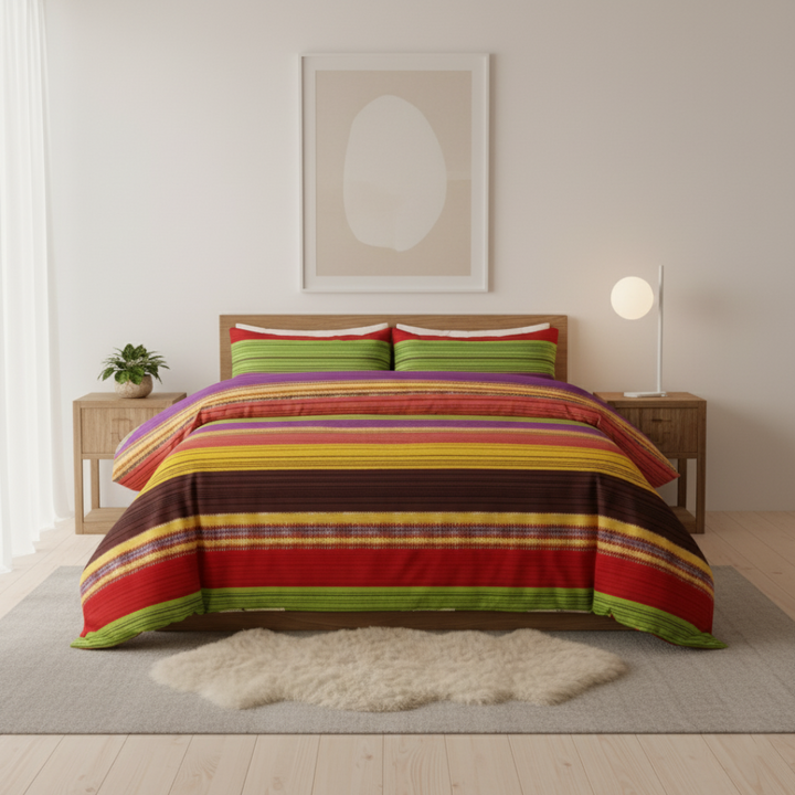 To give a vibrant and attractive look to your bedroom. This beautiful Polycotton bedsheet is designed using eye-catching colour patterns and alluring designs.
